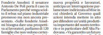 21 Novembre 2016 – MattinodiPadova – De Poli porta la crisi Anselmi sui banchi del Parlamento