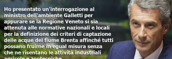 “L’acqua è un bene comune che deve essere fruito da tutti in uguale misura affinché non ne risentano le attività industriali, agricole e zootecniche. Bisogna assicurare il corretto approvvigionamento idropotabile a tutto il territorio regionale ma la mancanza di un criterio omogeneo che stabilisca quantità, modalità e tempistica del prelievo idrico consentito dai bacini ci … Leggi tutto Brenta: De Poli (Udc), Governo verifichi su criterio prelievo idrico, tuteliamo attività industriali agricole e zootecniche