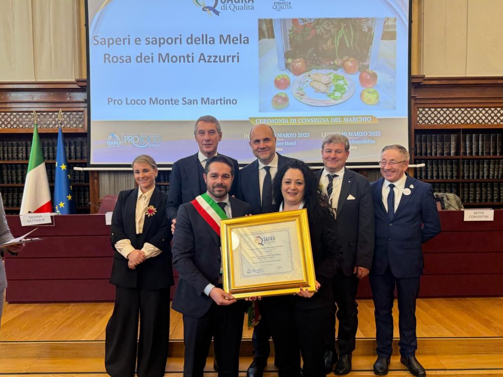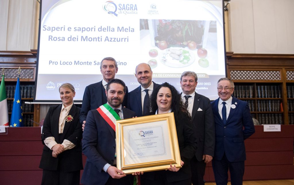 Nel corso della cerimonia è stata premiata anche la sagra “Saperi e sapori della mela rosa dei Monti Azzurri” di Monte San Martino (Macerata).