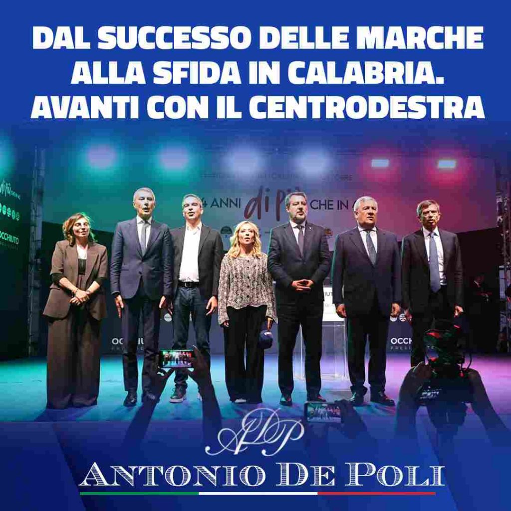 Siamo certi che il centrodestra saprà confermare la fiducia dei calabresi, così come ha fatto nelle Marche, dimostrando che l’unità, quando è costruita sui valori e sui fatti, viene sempre premiata.