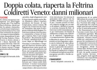 Maltempo. Doppia colata, riaperta la Feltrina. Coldiretti: danni milionari – Gazzettino