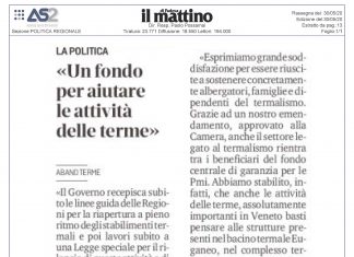 Un fondo per aiutare le attività delle terme – Mattino Padova