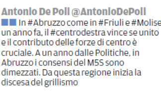Regionali in Abruzzo. Tweet del Senatore Antonio De Poli – La...