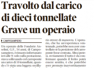 Camposampiero. Operaio schiacciato da una casssone – Gazzettino Padova