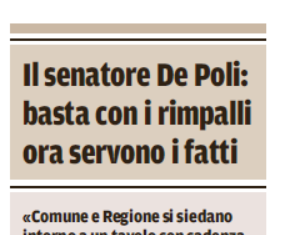 Ospedale Padova. Il senatore De Poli basta con i rimpalli ora...