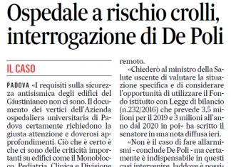 Ospedale a rischio crolli, interrogazione di De Poli – Gazzettino Padova