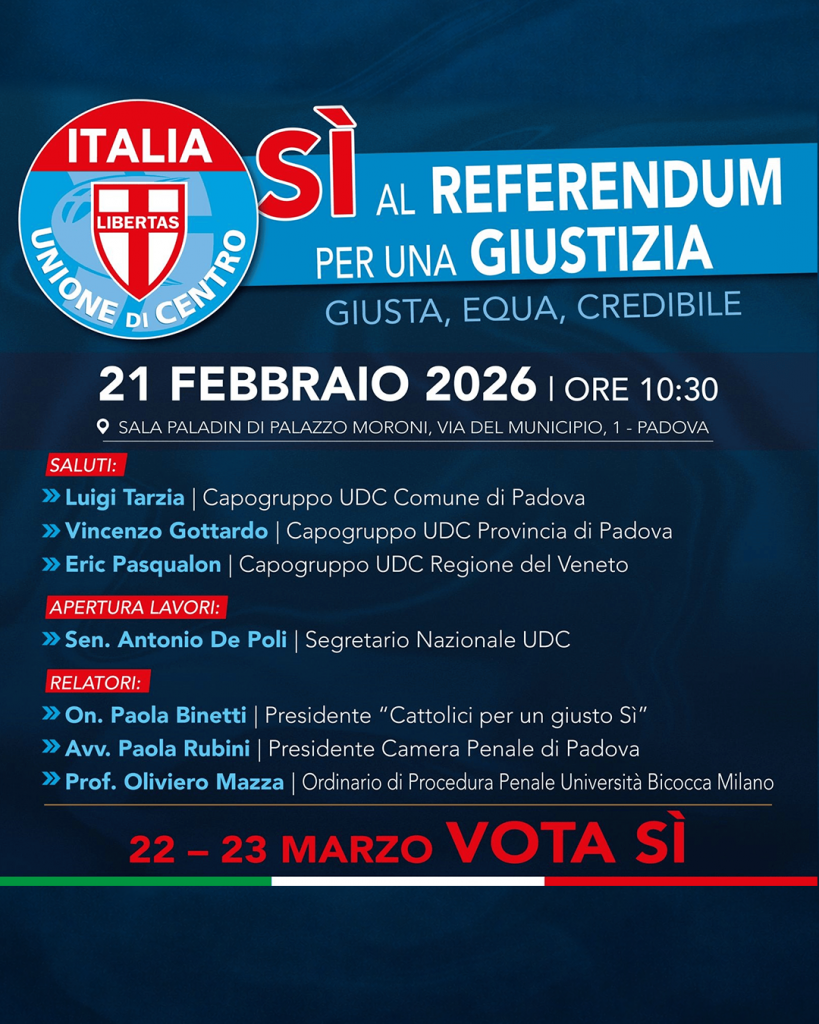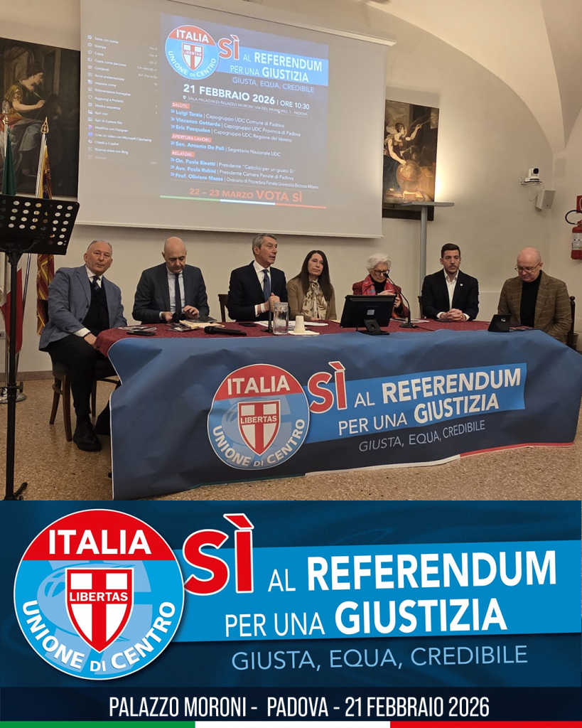 Si è svolto stamane, sabato 21 febbraio 2026, nella Sala Paladin di Palazzo Moroni a Padova, l’incontro promosso dall’Unione di Centro dedicato al referendum sulla giustizia.