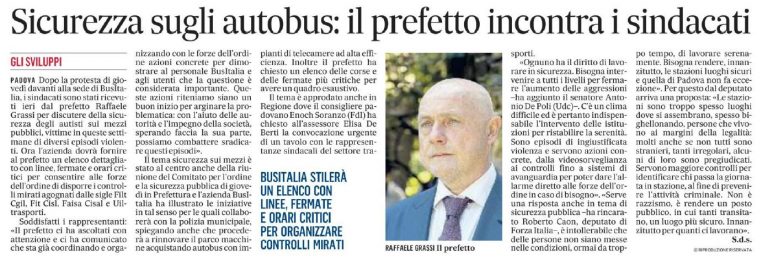 Sicurezza sugli autobus: il prefetto incontra i sindacati – Gazzettino Padova