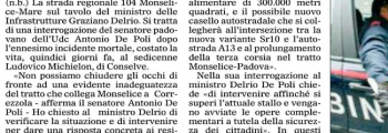 “Strada killer, appello a Delrio. Interrogazione del senatore De Poli”