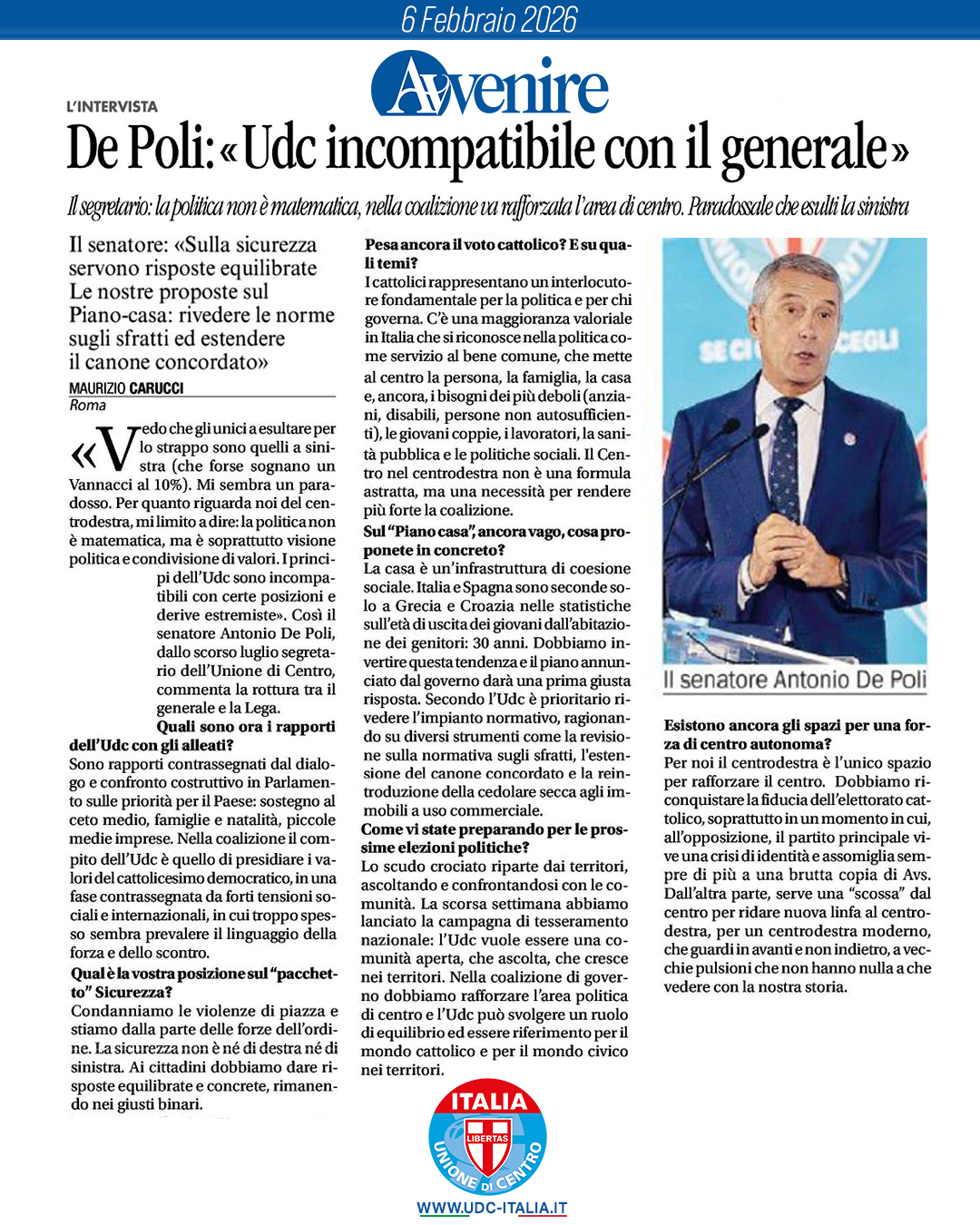 Lo scudo crociato riparte dai territori, ascoltando e confrontandosi con le comunità. La scorsa settimana abbiamo lanciato la campagna di tesseramento nazionale: l’Udc vuole essere una comunità aperta, che ascolta, che cresce nei territori. Nella coalizione di governo dobbiamo rafforzare l’area politica di centro e l’Udc può svolgere un ruolo di equilibrio ed essere riferimento per il mondo cattolico e per il mondo civico nei territori.